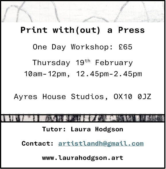 This course is suitable for beginners or those wishing to explore new ways of developing their arts practice. Experimental in its approach you will be introduced to new ways of mark making, layering texture and exploring composition intuitively through introductory printing methods. By the end of the day you will be equipped with techniques and processes that can be explored at home with or without the use of a press.